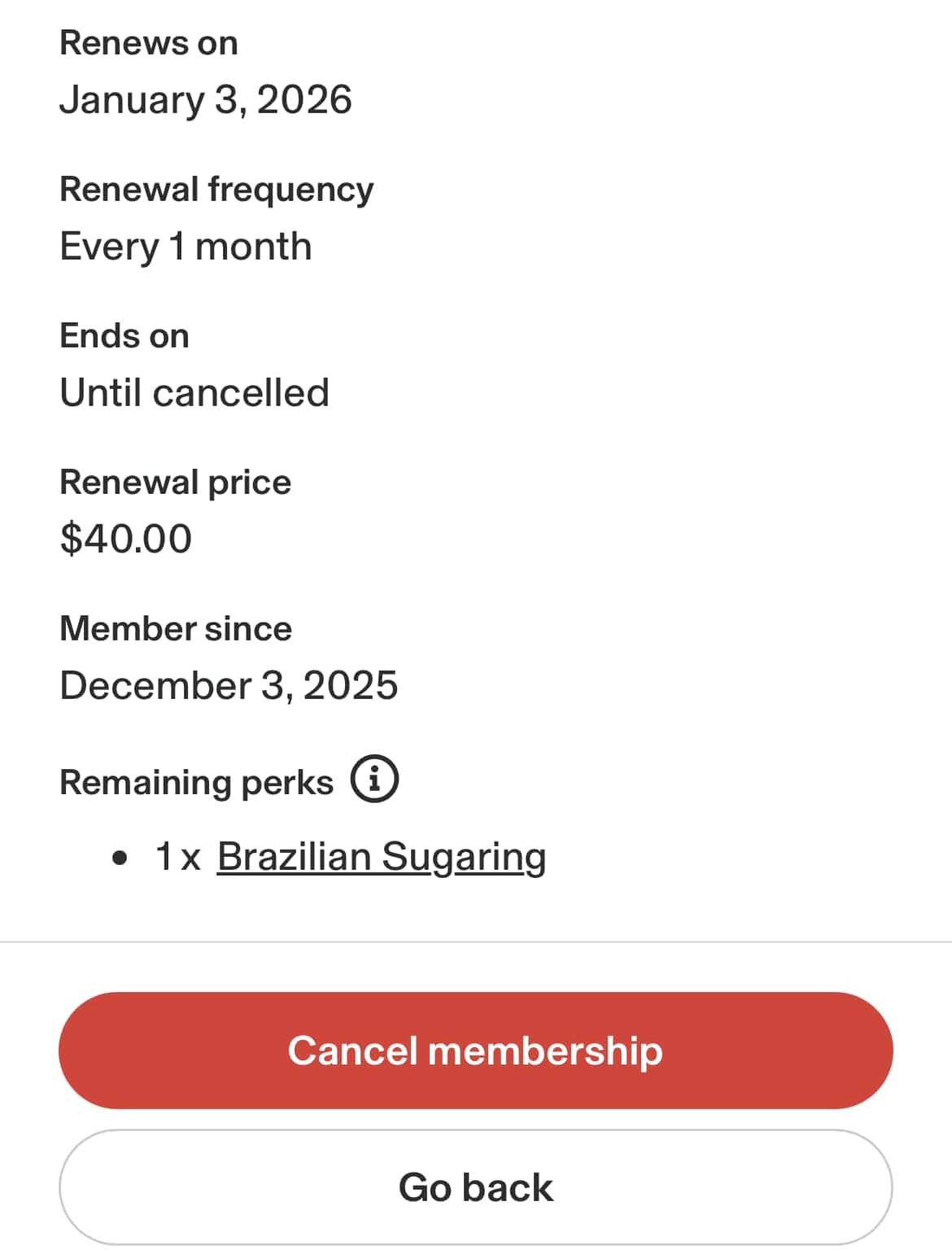 - Renews every 4 weeks on the date you joined